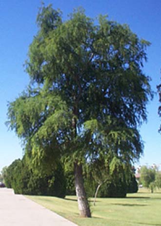 Slow growing under dry conditions. Eventually, it becomes 75 feet high, 30 feet wide. Large tree. Short, narrow, flat, needlelike leaves in sprays.
